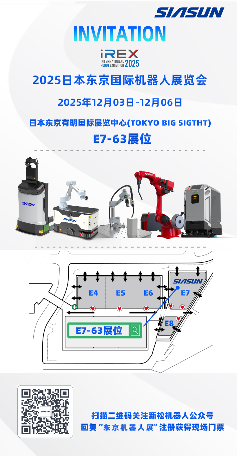 12月3-6日,新松公司即将携系列前沿智能机器人产品及自动化解决方案,再度亮相亚太创新合作的广阔舞台。期待与更多伙伴在智能化时代浪潮中开放创新、携手共赢!